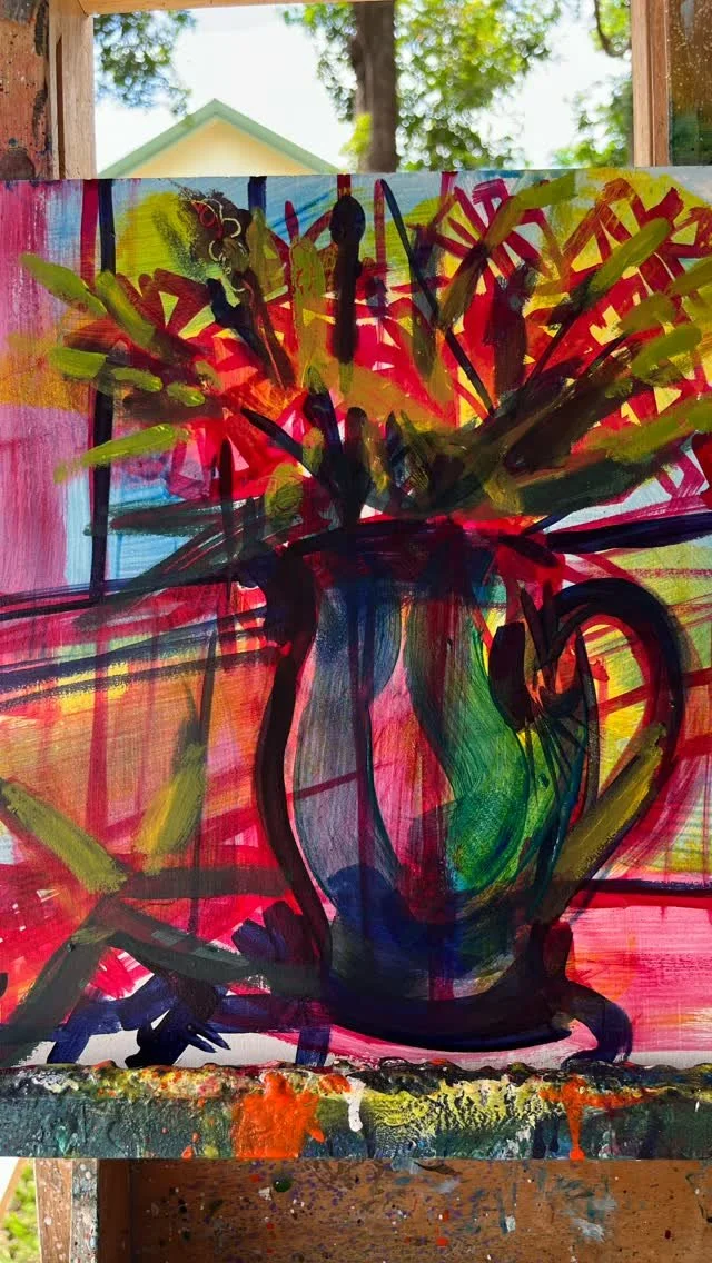 I offer vibrant, hands-on workshops that focus on acrylic painting, observation, and playful exploration. My goal is to help you loosen up, experiment with colour and texture, and connect more deeply with your subject, whether that’s still life, landscape, or botanicals.