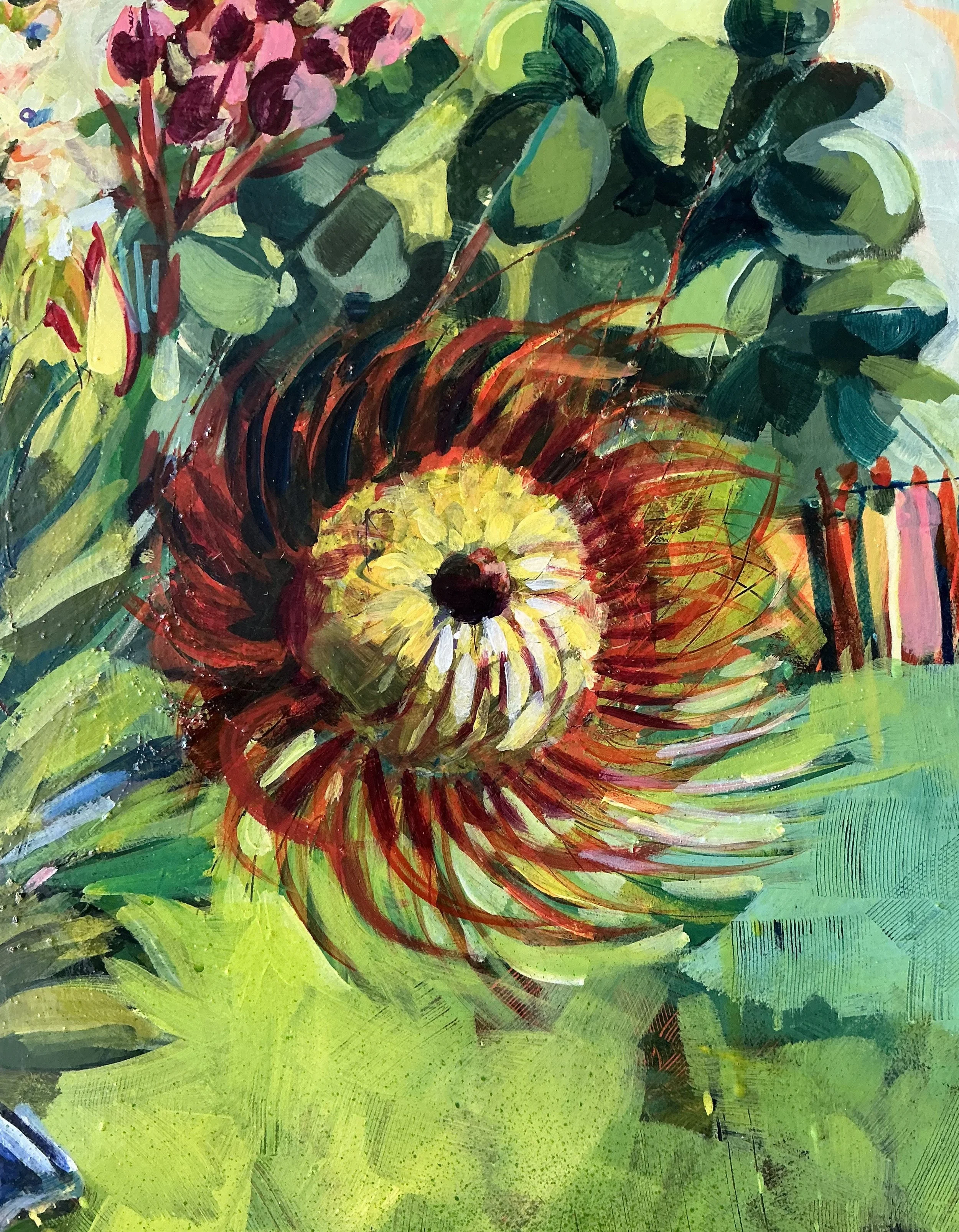 I work from direct observation or from drawings I have made on location. I draw my image directly onto the painting surface. I use a round brush and usually acrylic ink. I will use paint thinned with medium if I don’t have ink available. Regular ink will reconstitute so make sure you use acrylic ink.