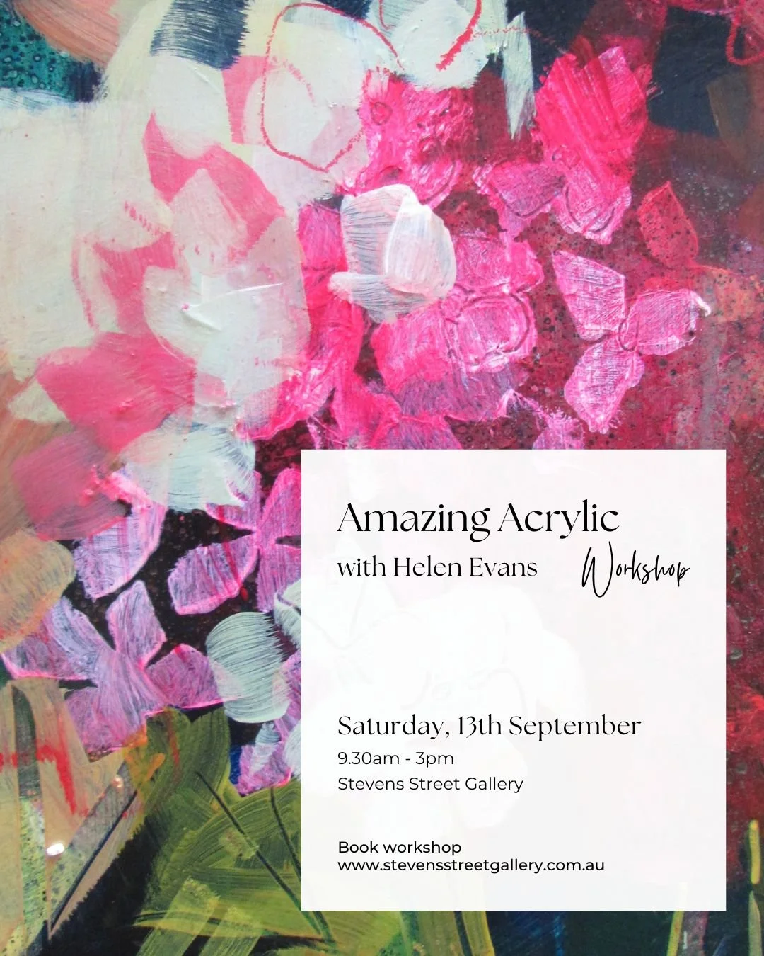 My workshops are for anyone curious about painting, from absolute beginners, returning creatives, to practising artists. If you want to slow down, see the world differently, and grow your confidence with colour and acrylic, this is the place for you.